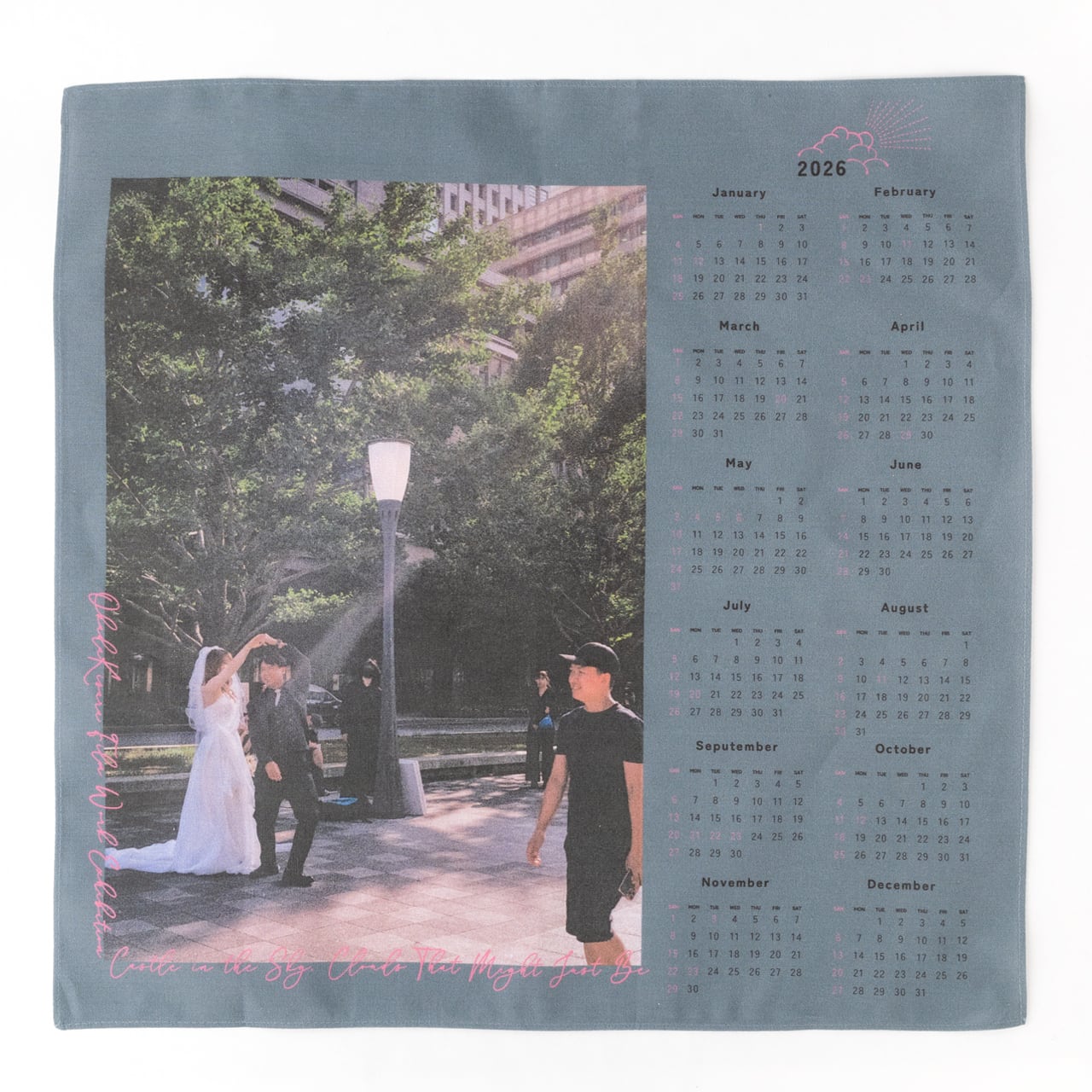 2026年のカレンダーとして飾れるようにデザインしてあるので、まずは壁に。